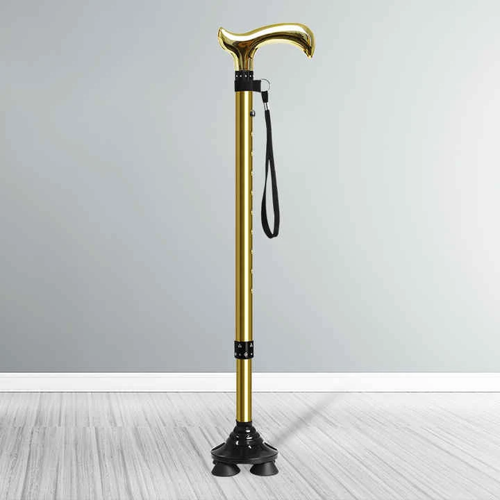 합금 망원경 보행 극, 쿼드베이스는 바닥에서 떨어지거나 떨어지는 자체 서있는 지팡이를 만듭니다. 일단 조기 지팡이는 견고한 단단한 지팡이처럼 작동합니다.