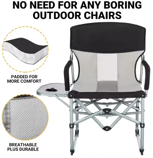 바베큐 캠핑 피크닉 의자, 접이식 캠핑 의자, 헤비 듀티 휴대용 감독 의자 사이드 테이블 메시가있는 성인을위한 의자 야외를위한 소형 스타일