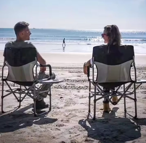 바베큐 캠핑 피크닉 의자. 구축 된 컵 홀더. 휴대 전화, 간식 및 선글라스는 접이식 측면 테이블에 놓을 수 있습니다. 캠핑 잔디밭 의자 뒤의 그립은 야외로 운반하기에 편리합니다. 야외 모험, 테일 게이팅, 낚시, 배낭 여행, 해변, 피크닉, 스포츠 게임, 자동차 여행 또는 뒷마당, 캐빈, 발코니, 안뜰 잔디 파티에 넣습니다. 모두를위한 휴일 선물