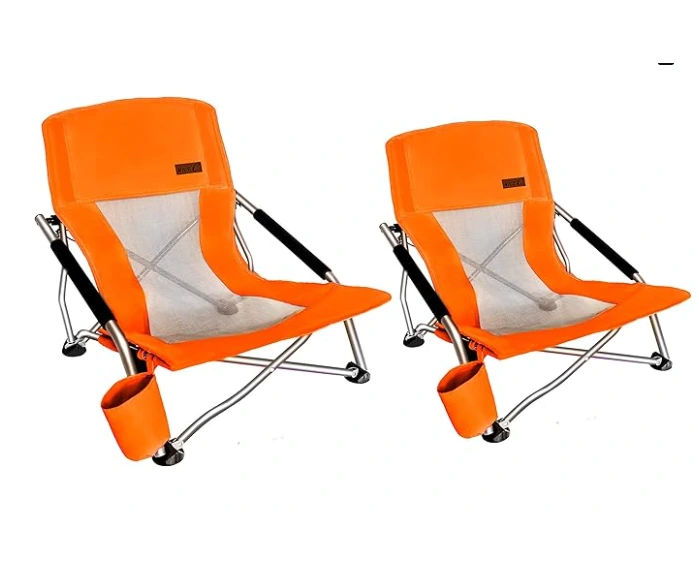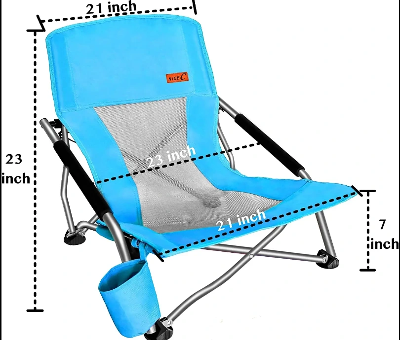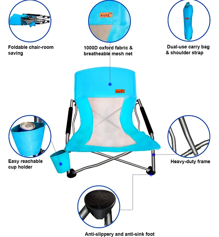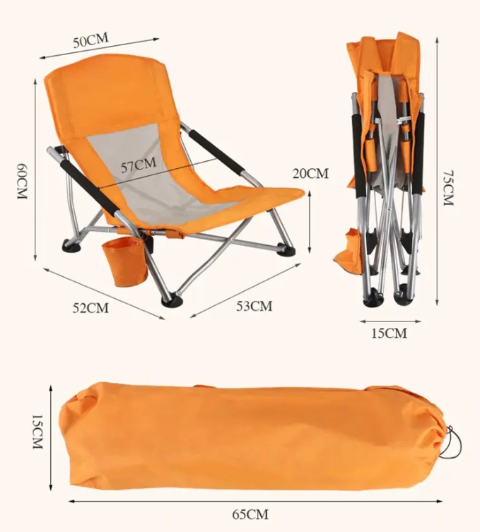 접이식 해변 세트, 성인을위한 낮은 해변 의자 컵 홀더 및 휴대용 가방을 갖춘 휴대용 모래 의자를 접이식. 금속 팔에 팔 쿠션이 있으므로 팔을 편안하게 쉬게 할 수 있습니다.