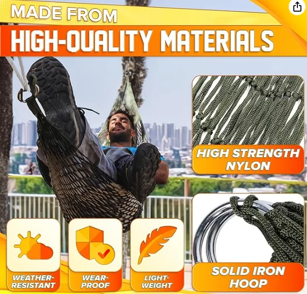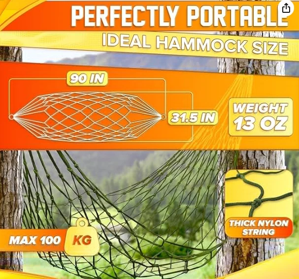 하이킹 매달려 해먹을 하이킹 한이 나일론 스트링 해먹은 하중 수용 용량이 높습니다. 이 나일론 로프 해먹은 내구성이 높고 마모에 저항력이있어 실내 및 실외에 적합합니다.