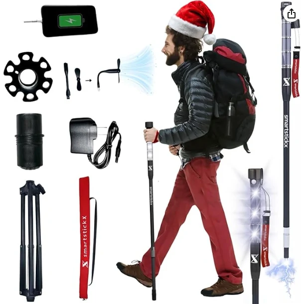 LED 조명 트레킹 폴, 한 번의 충전으로 최대 10 시간 동안 지속될 수있는 평균 핸드 헬드 손전등보다 강한 400 루멘의 광 출력을 제공하는 LED 조명. 하이킹, 캠핑 또는 기타 야간 활동을위한 고품질 트레킹 폴란드 및 모든 비상 상황을위한 번쩍이는 조명