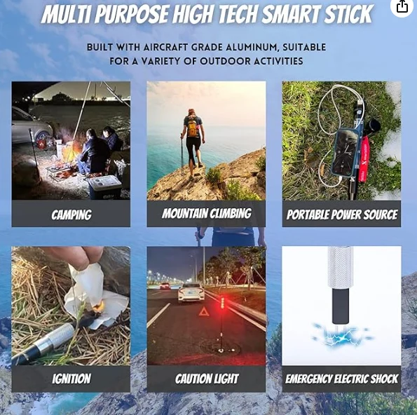 LED 조명 트레킹 폴. 프리미엄 품질의 다목적 트레킹 폴, 하이킹, 생존 지팡이 및 탁월한 셀프 방어 스틱은 위험한 야외 활동을위한 탁월한 셀프 방어 스틱.