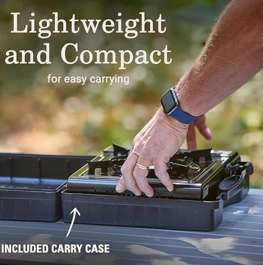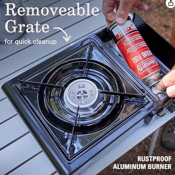 미니 휴대용 실외 캠핑 오븐. 포스 셀린 코팅 된 화격자는 빠른 청소를 위해 제거 할 수 있습니다. Rust-Proof Aluminum Burner.zhejiang Jiyu Outdoor Products Co., Ltd. 자동, 무질서한 조명을위한 Instastart 점화; 7,650 요리 파워의 총 BTU