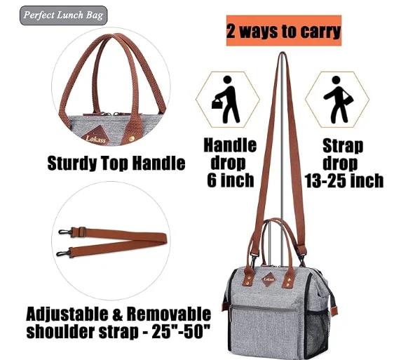 큰 점심 가방에는 메인 칸 (10.5 "x6"x12 "), 큰 전면 지퍼 포켓 (8"x7 "x1.5"), 뒷주머니 (9.5 "x6.5") 및 2 개의 측면 메쉬 포켓이 있습니다. 쉬운 휴대용을위한 최고 핸들 및 조정 가능한 및 탈착식 어깨 스트랩 (25 "-50") 디자인.