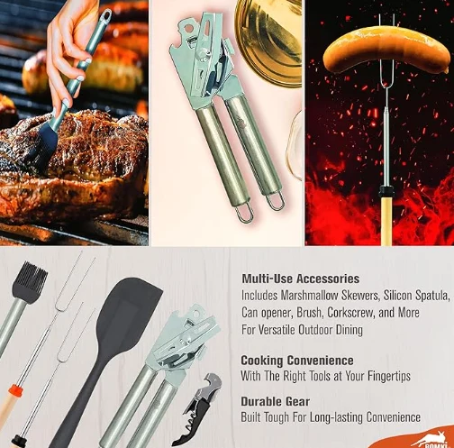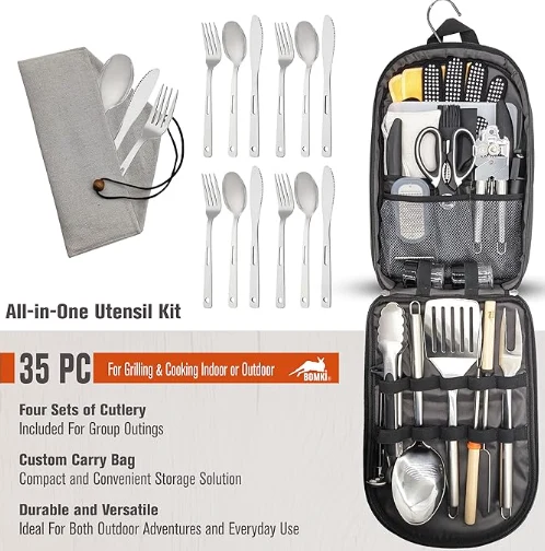 야외 캠핑 조리기구 보관 백이 35 PC 캠핑 요리기구 세트는 야외 요리 요구를위한 완벽한 솔루션입니다. 여기에는 캠핑 주방 세트와 캠핑기구 요리 세트가 포함되어 있으며, 여분의 구획과 2 개의 뒷 주머니가있는 맞춤형 가방에 깔끔하게 포장되어 있습니다. 이 세트는 모든 캠핑 요리 필수품을 수용하도록 설계되어 캠핑 장비에 필수 불가결 한 추가 기능을 제공합니다.