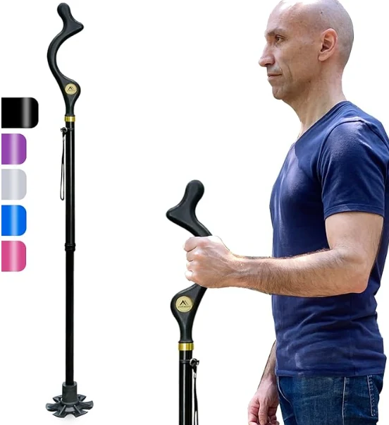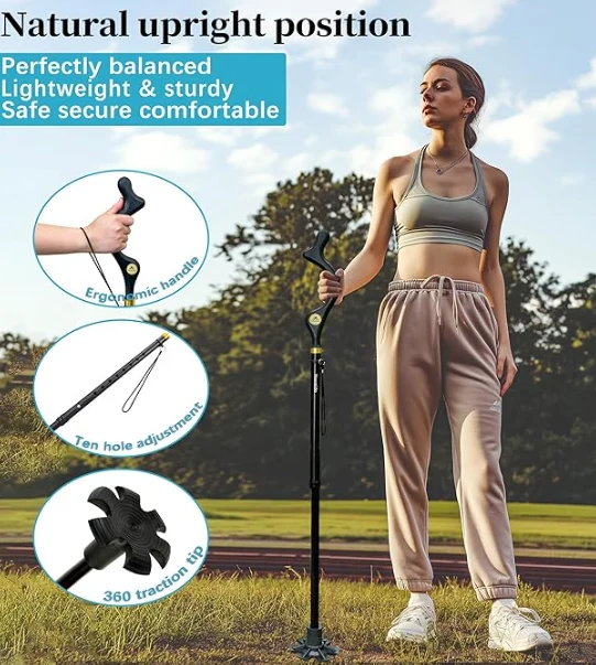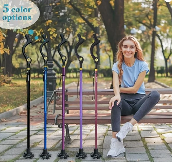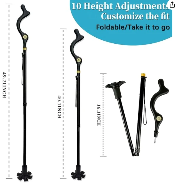 실외 등반 장비 하이킹 극, 균형을위한 남성 및 여성 선배를위한 걷는 지팡이 접이식, 자체 스탠딩 접이식 지팡이, 높이 조절 가능한 안티 슬립 가벼운 합금 보행 스틱 여행 모빌리티 보조도 원조.