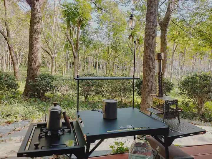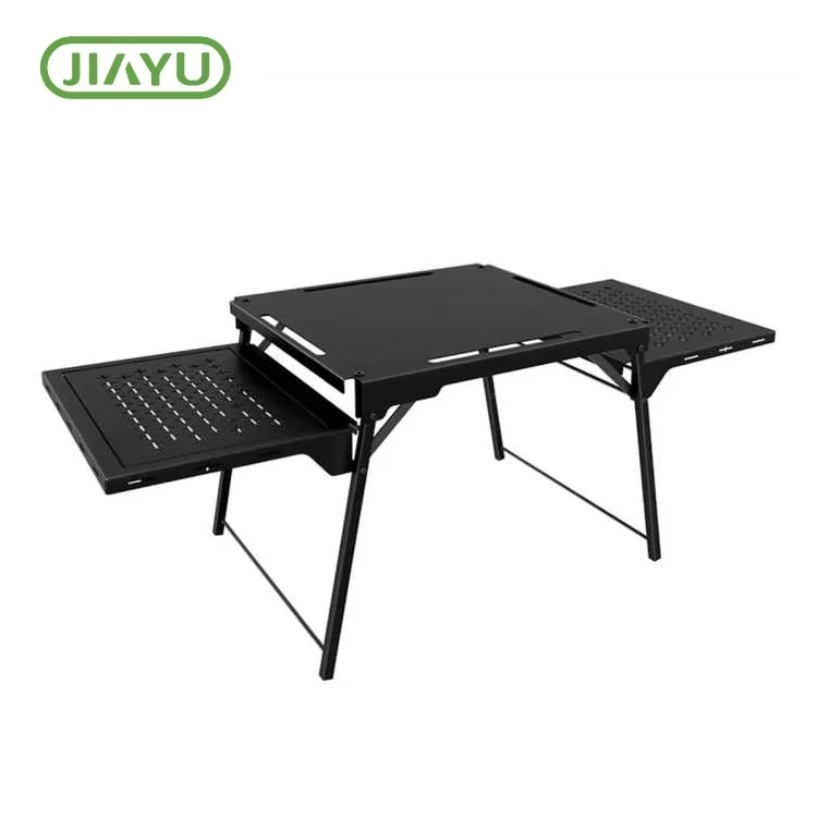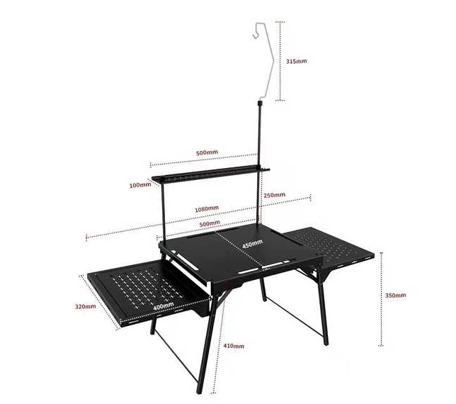 휴대용 접이식 알루미늄 아이언 캠핑 테이블, 식탁 플랫폼은 상단, 중간 및 하단 부품으로 구성되며 모든 종류의 식탁, 음식 및 조미료를 저장하기에 충분한 공간이 있습니다.