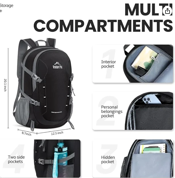 방수 하이킹 접이식 배낭, 하나의 방수 젖은 주머니가 메인 칸에 추가됩니다.이 배낭 뒷면에 지퍼가 내부 젖은 주머니로 이어지고 수영 또는 운동 후 땀이 나는 옷, 타월 또는 기타 개인 물건을 더 잘 분리합니다.