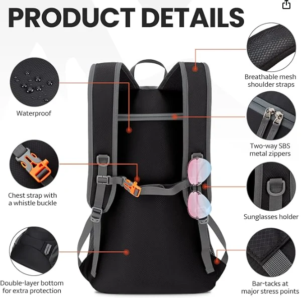 방수 하이킹 접이식 배낭, 휘파람 버클이있는 가슴 클립은 팩의 무게를 분배하고 안정적이고 중앙에 유지하기 위해 완벽하게 작동합니다. 스포츠, 하이킹 및 Campingzhejiang Jiyu Outdoor Products Co., Ltd. 야외 야외 활동 중 가시성 향상을 위해 반드시 있어야합니다. 이 디자인은 당신이 다른 사람들에게 보이는 상태를 유지하고 어두워 질 때 안전을 증가시킵니다.